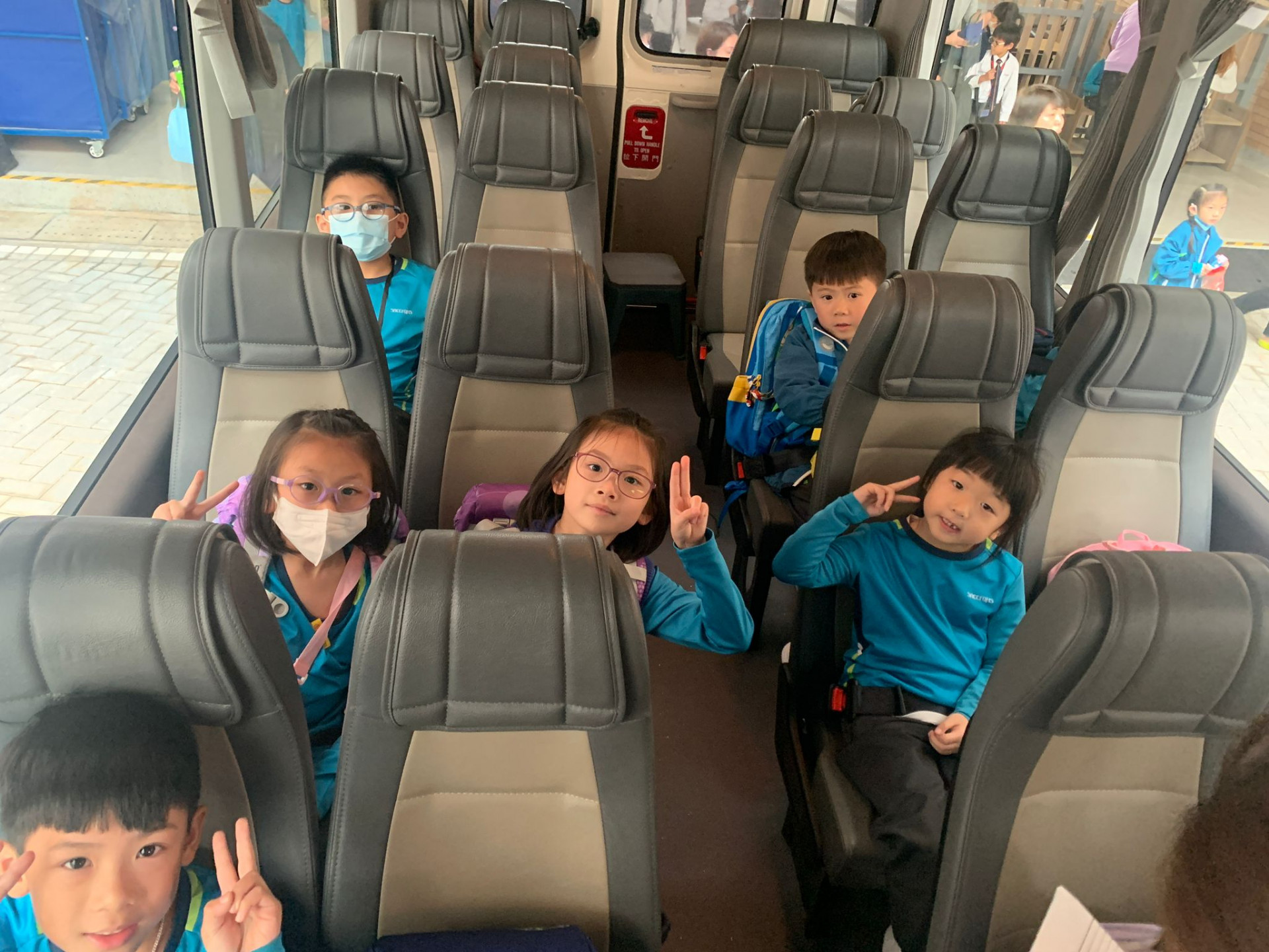 !學生們對第一次乘搭校車都十分雀躍呢。