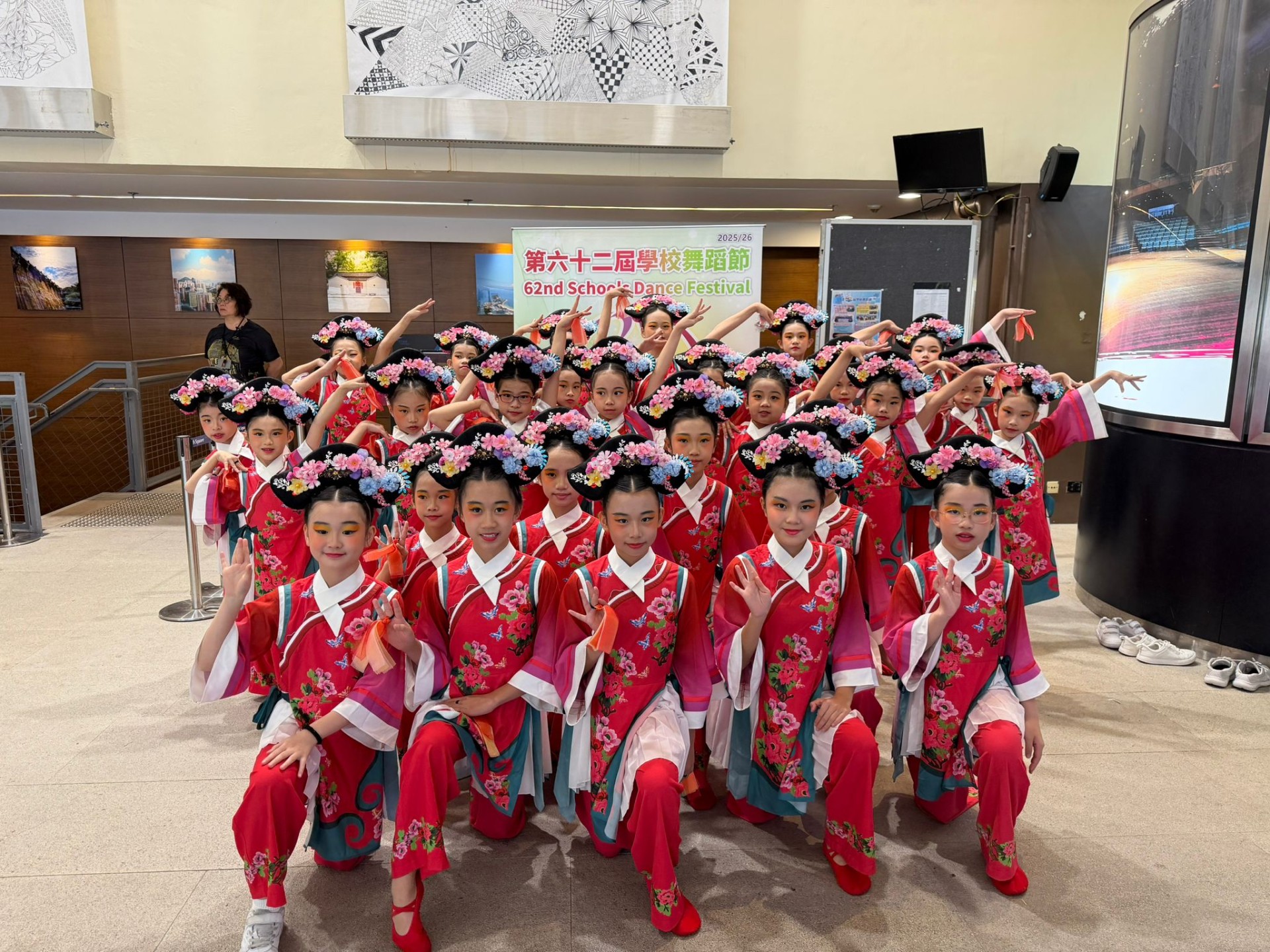 🎉🎊 謹此恭賀中國舞校隊於第62屆學校舞蹈節榮獲甲等獎,成績優異,令人鼓舞。🙏 衷心感謝教練的專業指導、家長在排練期間的支持與配合,並感謝教練、家長與黃老師一同悉心打理化妝及髮型,使演出圓滿完成。💐 展望未來,中國舞校隊將繼續努力不懈,為學校爭取更多佳績,增添光彩。✨🩰
