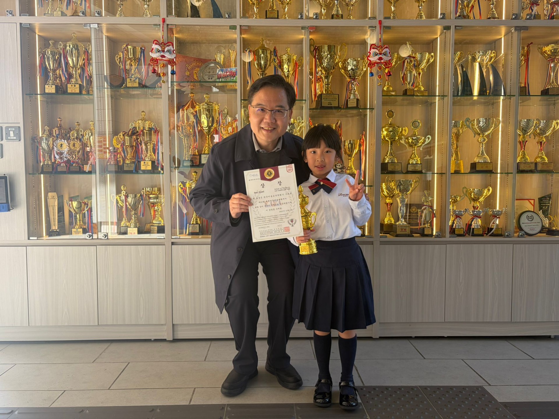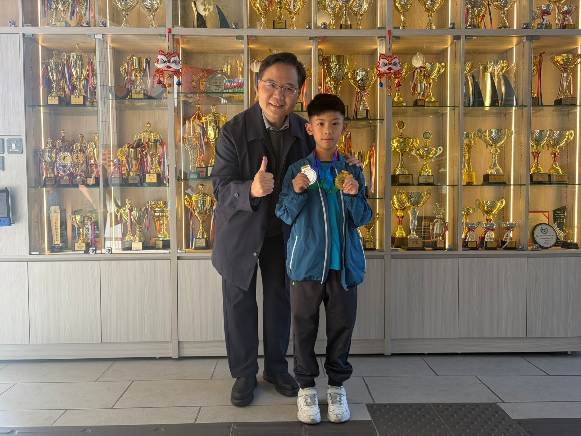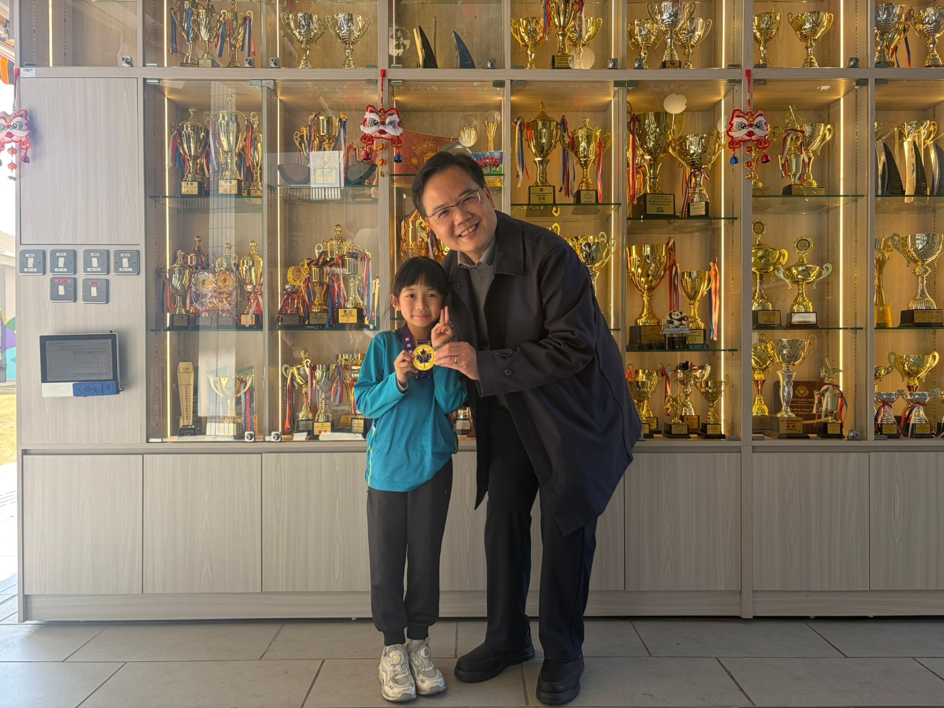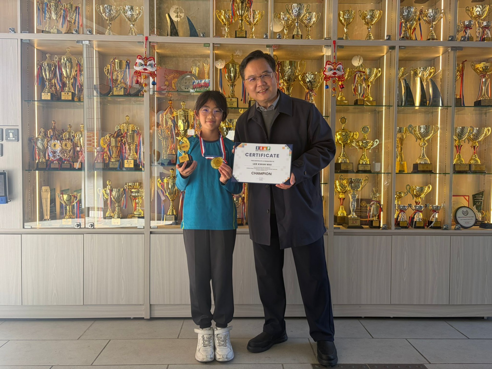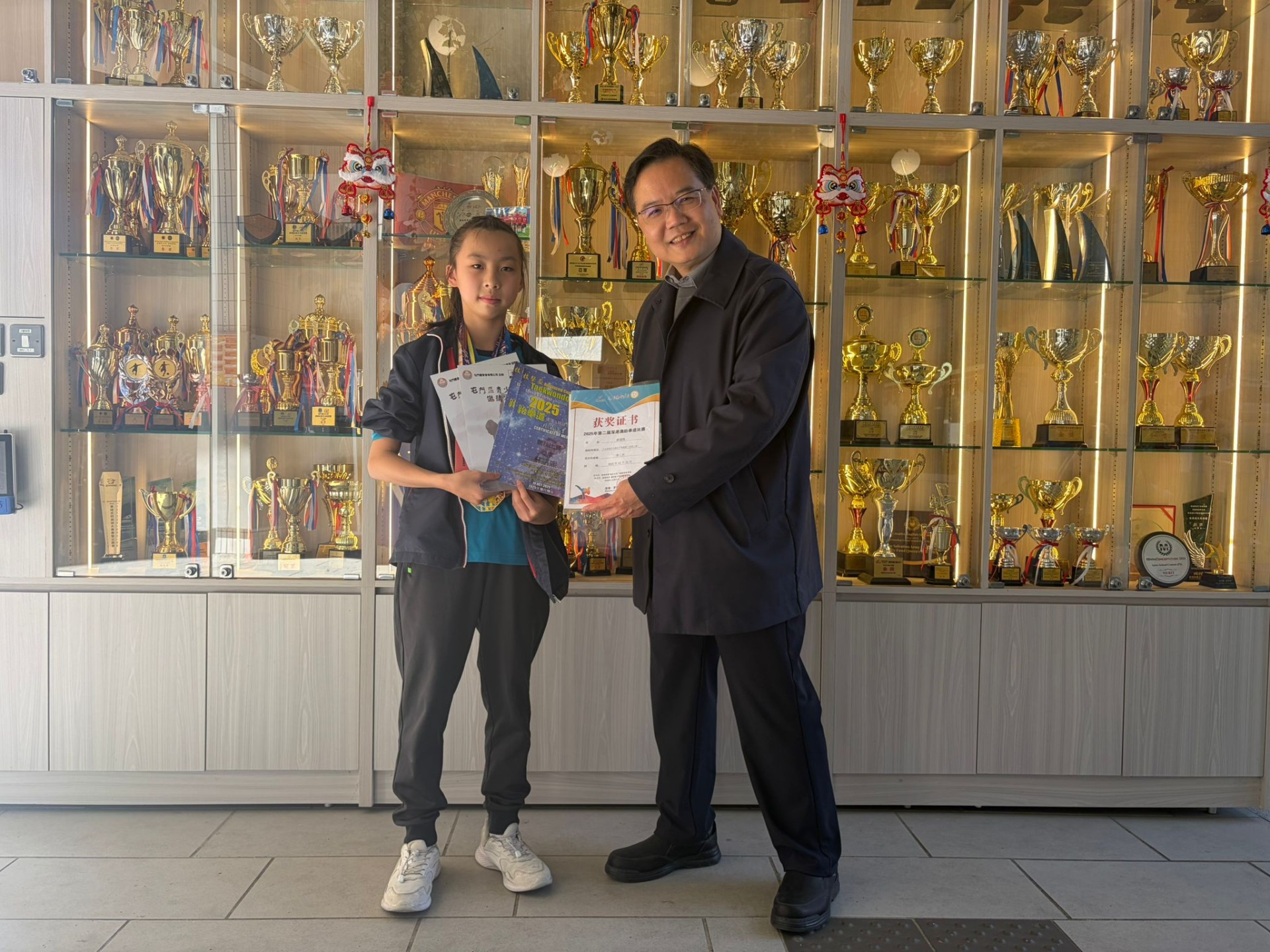 4. 恭喜5A 蘇語熙:在「2025年第二屆深港澳跆拳道比賽-個人品勢少兒組女子初級組(太極2級)」中獲得第二名及功力擊破少兒組1.2女子4組中獲得第三名; 在「2025深圳市第31屆跆拳道錦標賽暨第21屆跆拳道品勢比賽」的電子競速少兒組女子雙飛踢1組獲得第三名、功力擊破少兒組0.9女子1組獲得第二名及個人品勢少兒組女子D組: 太極二章1組獲得第一名; 在「技擊盃2025跆拳道速度及競技比賽」的速度比賽中獲得冠軍及競技比賽中獲得亞軍; 在「屯門區青少年跆拳道邀請賽2025」的10-12歲白至黃綠帶(初級) 競速王及幼年組10-11歲 品勢比賽中均獲得冠軍