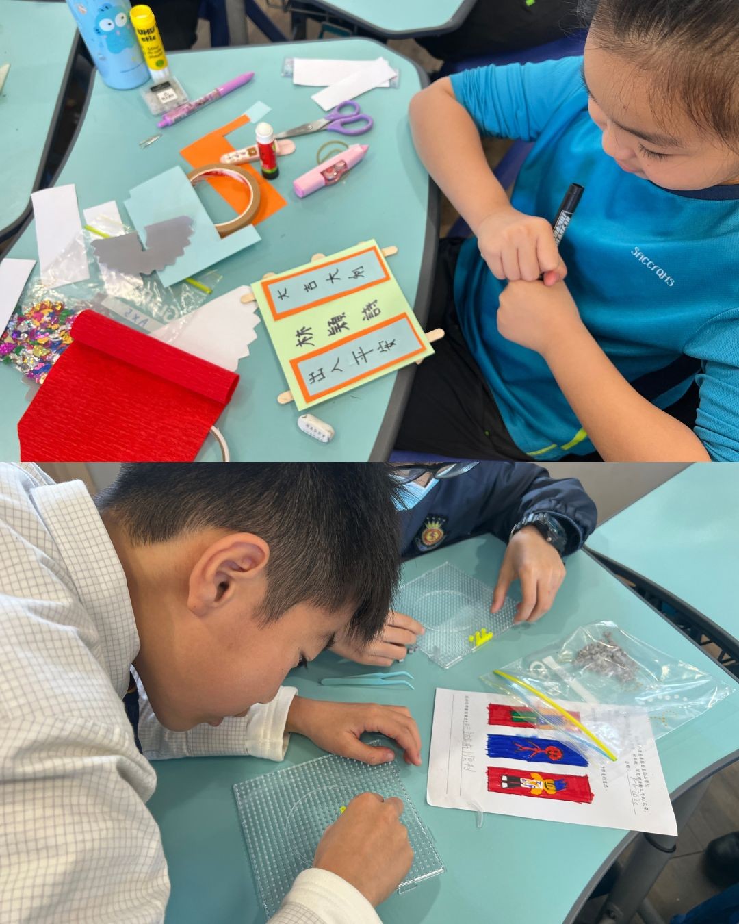 四年級同學以「龍的傳人」為主題,透過了解香港新界五大姓族、製作圍村花帶裝飾、喜慶祝福花牌、輕黏土傳統小食、參觀龍躍頭文物徑等豐富活動,認識及體驗香港圍村傳統文化,從而加深對中華文化的了解,並提升國民身份認同。
