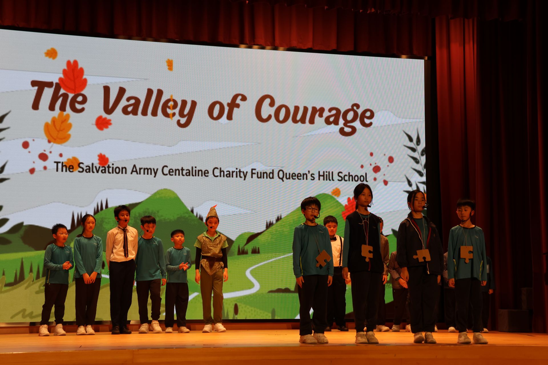 本校英文話劇隊於3月10日參加由香港學校戲劇節舉辦的英文話劇比賽。作品《勇氣之谷》講述四名學生因不同形式的恐懼而受困,於表演前被風之精靈帶入風之谷,並與恐懼之王正面交鋒。他們在協助驚慌的市民同時,逐步克服內心的自我懷疑。最後,四人聯手擊敗恐懼,回校後以更自信的姿態面對舞台,學會勇敢相信自己,並彼此扶持。